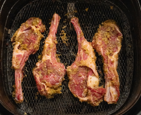 Air fry lamb cutlets at 190°C for 12–15 minutes, flipping once for even cooking and a light char.