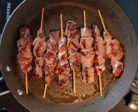 Stovetop/Grill – Recommended: Heat a grill or frying pan over medium-high heat. Cook the beef skewers for 2.5–3 minutes per side, turning until evenly golden brown. Turn off the heat and remove the skewers from the pan. Brush generously with Ahh Maa Donburi Sauce, then return the skewers briefly to the hot pan (off heat), flipping for a few seconds on each side to allow the sauce to caramelise using residual heat.