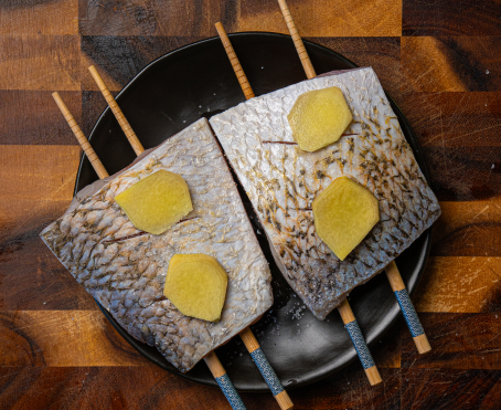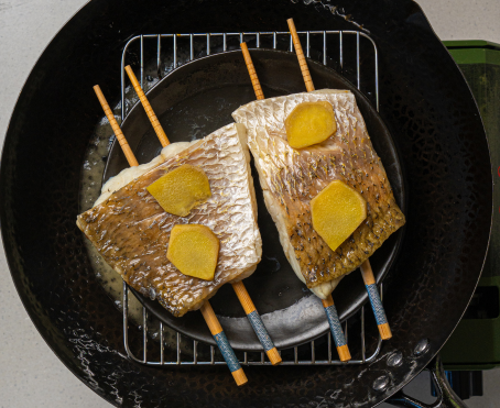 Wash the barramundi fillets and pat dry with a paper towel. Cut two shallow slits into each fillet (about ¼ of the thickness deep). Place 4 chopsticks horizontally on a plate to steam and rest 2 barramundi fillets on top to elevate them. Drizzle the Shaoxing Wine evenly over the fish, sprinkle lightly with salt, and layer the ginger slices on top. Repeat for 4 or 6 servings.